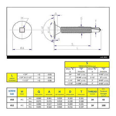 #12 x 2-1/2" Metal Screw Wafer Head Square Drive #3 Self-Drilling Point - Zinc