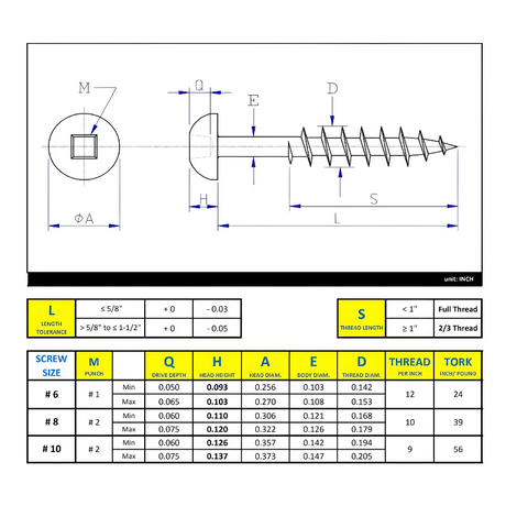 #6 x 1" Metal Screw Flat Head Square Drive #2 Self-Drilling Point - Stainless Steel 410H