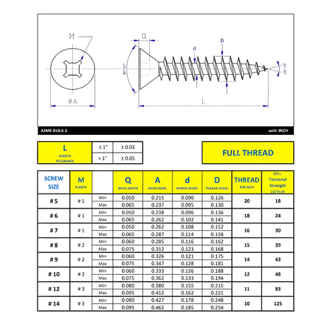 #6 x 1" Metal Screw Flat Head Quadrex Drive Type A Point - Zinc