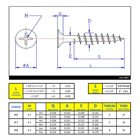 #6 x 1" Drywall Screws Bugle Head Phillips Drive Self-Tapping Thread - Zinc