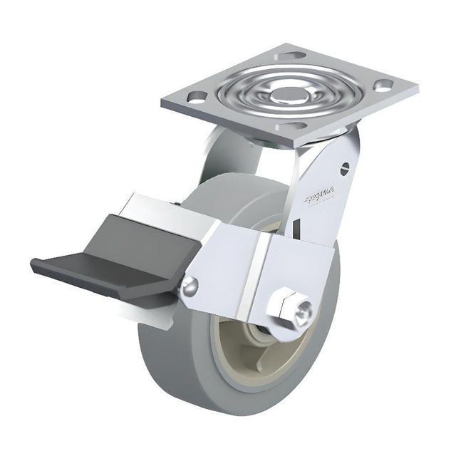 Product Details : ElastiSoft Grey Caster 5" x 2" Swivel Trailing Wheel Brake (WK) 350 lbs Roller Bearing P21 Series