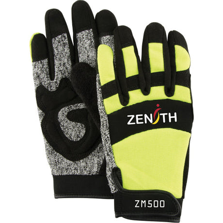 ZM500 High-Visibility Cut-Resistant Mechanic's Gloves, HPPE Palm, Size X-Large