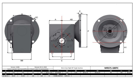 Max Motion MRS75-10-180TC | Stainless Steel Gearbox 180TC 10:1 Size 75 Output Bore 1.25"