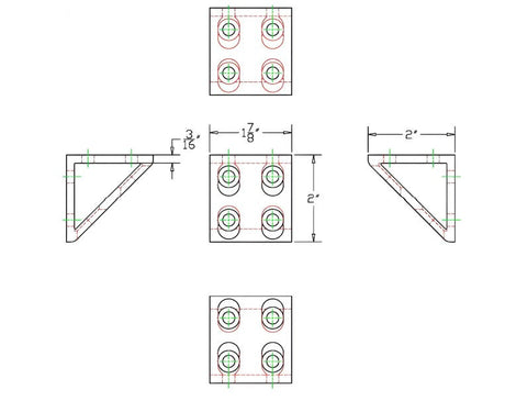 8 Hole Inside Corner Gusset 2" x 2" x 1-7/8" | 10 Series Aluminum T-Slot