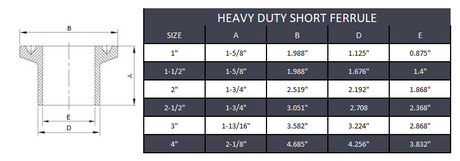 2" x 1-1/8" lg Tri-Clamp Long Ferrule - Stainless Steel 304