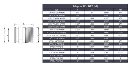 2" x 1-1/2" Tri-Clamp x Male NPT Adapter - Stainless Steel 316
