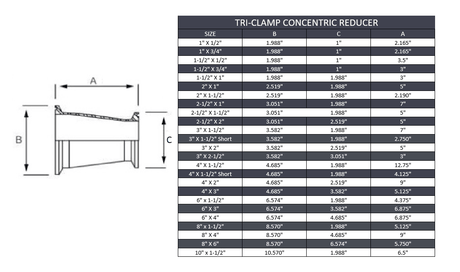 4" x 3" Tri-Clamp Concentric Reducer - Stainless Steel 316