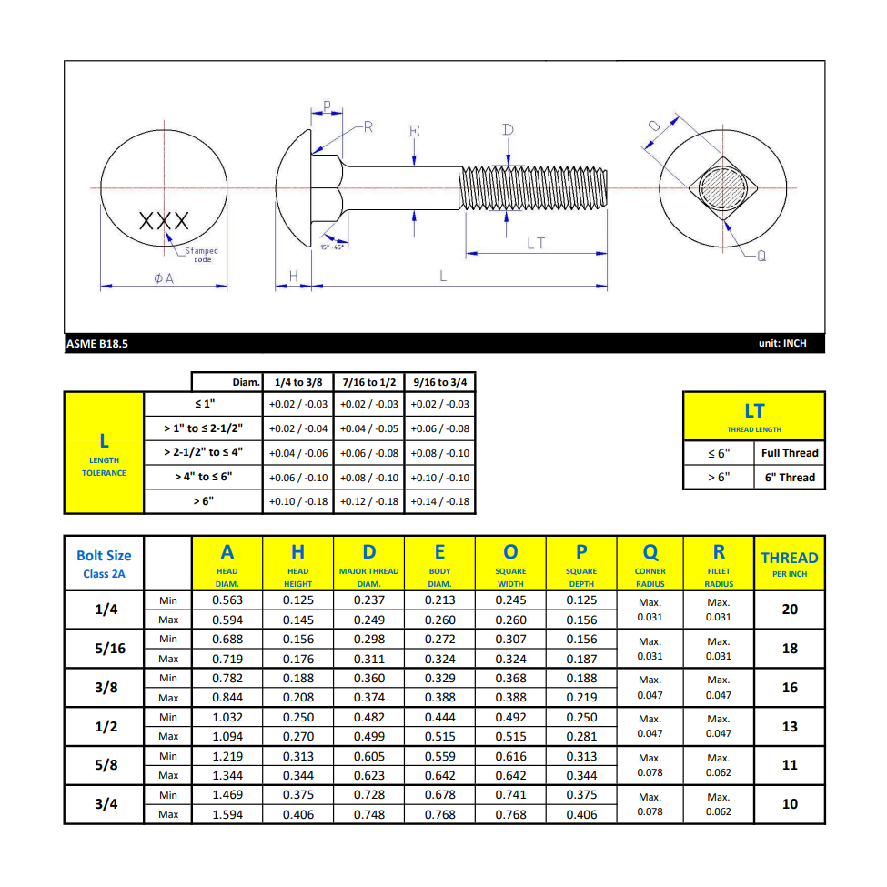 - Standards and Certifications: ASTM A307, ASME B18.5
