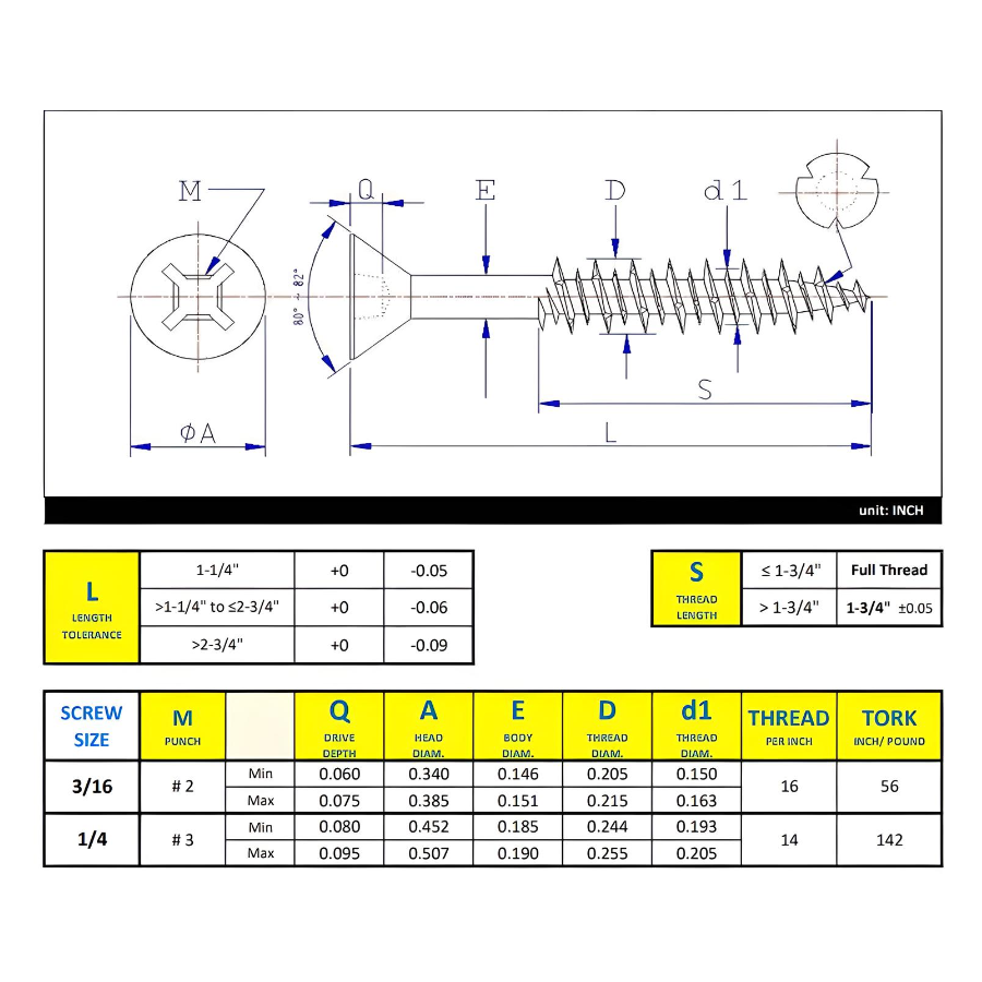 Forces Inc 1/4" x 4" Concrete Screw Blue Coating Flat Head Quadrex Drive