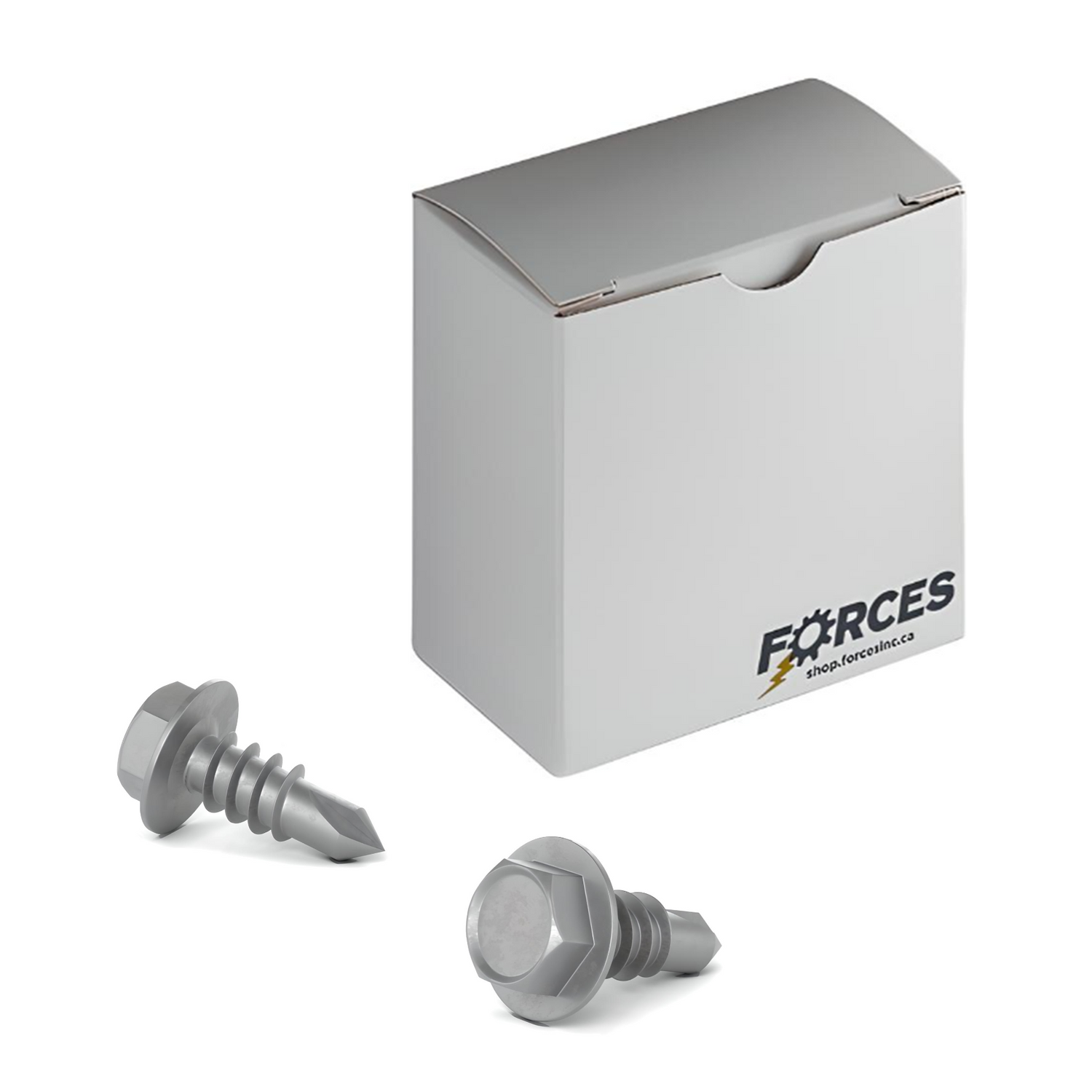Forces Inc #8 x 1/2" Metal Screw Hex Washer Head Hex Drive #2 Self-Drilling Point - Steel Silver RUSPERT