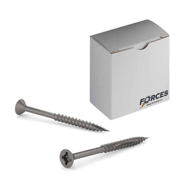 Forces Inc #8 x 1-3/4" Wood Screws Flat Head W/ Nibs Quadrex Drive Coarse Thread Double Cut Point Plain Steel