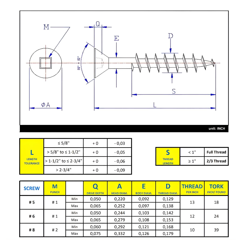 Product Details : #8 x 1-5/8" Wood Screws Flat Head Square Drive Coarse Thread Regular Point Zinc