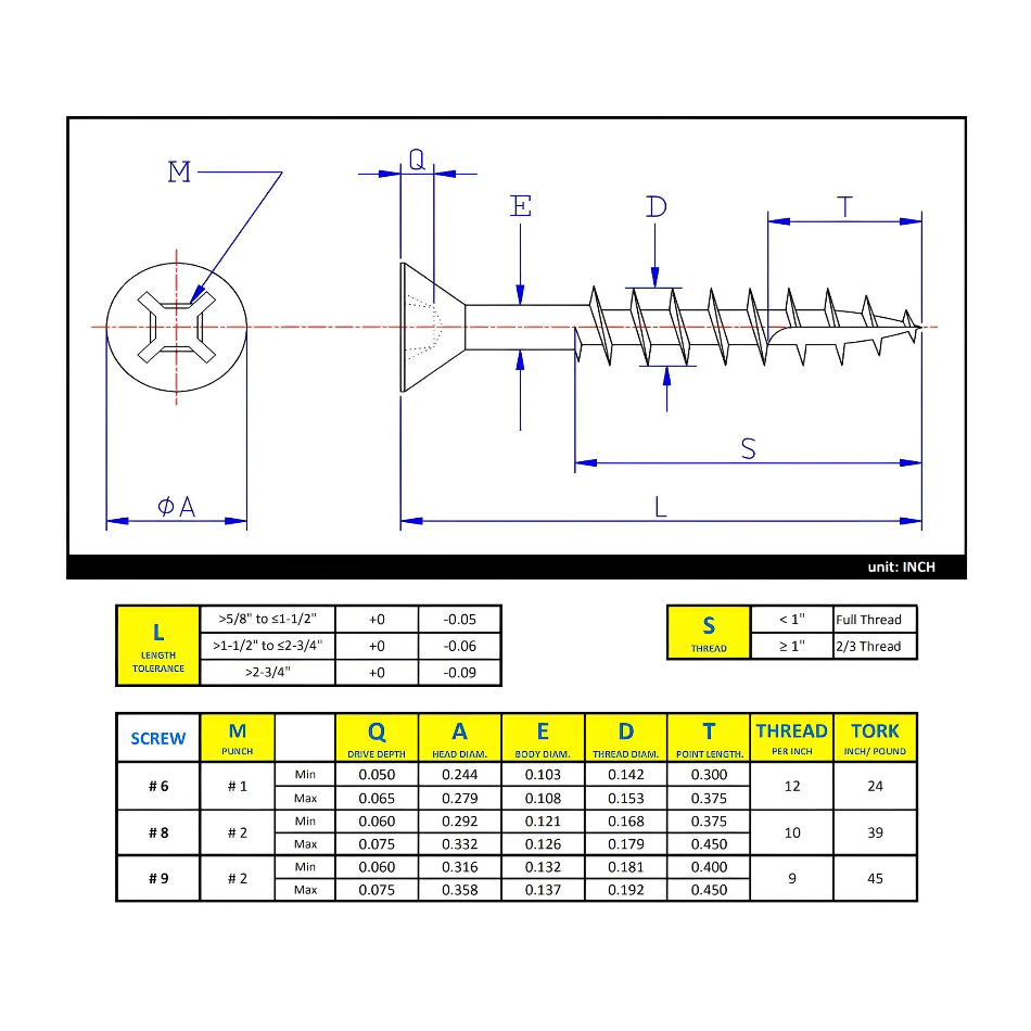The Type 17 point eliminates the pre-drilling step. It also prevents wood from breaking and splintering The coarse thread design enhances the holding power of the screw, providing a strong and secure connection.