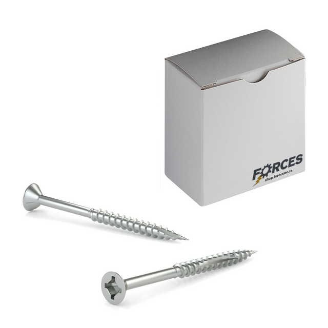 Forces Inc #8 x 2-1/4" Wood Screws Flat Head W/ Nibs Quadrex Drive Coarse Thread Double Cut Point Zinc
