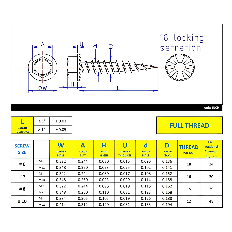 Product Details : #8 x 3/4" Metal Screw Hex Washer Head With Serration Hex Drive Type S Point - Zinc