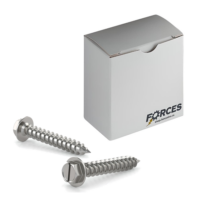 Forces Inc #8 x 3/4" Metal Screw Slotted Hex Washer Head Hex Drive Type A Point - Stainless Steel 18-8