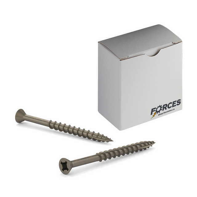 Forces Inc #8 x 3" Wood Screws Flat Head W/ Nibs Quadrex Drive Coarse Thread Type 17 Point Plain Steel