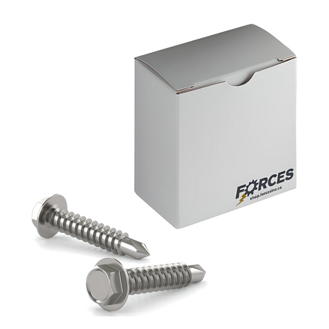 Forces Inc #8 x 5/8" Metal Screw Hex Washer Head Hex Drive #2 Self-Drilling Point - Stainless Steel 410H