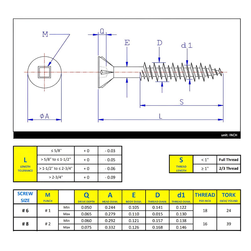Product Details : #8 x 5/8" Wood Screws Flat Head W/ Nibs Square Drive Hi-Low Thread Regular Point Zinc