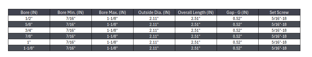 - Set Screw: 5/16-18