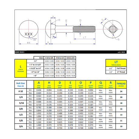 1/2"-13 x 2" Carriage Bolt Full thread - Zinc Plated ASTM A307
