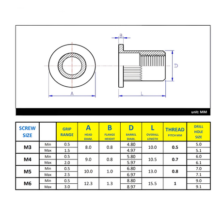 M5-0.8 x 10mm DIN 7991 Flat Head Socket Cap Screw Full thread - Zinc Plated Class 8.8