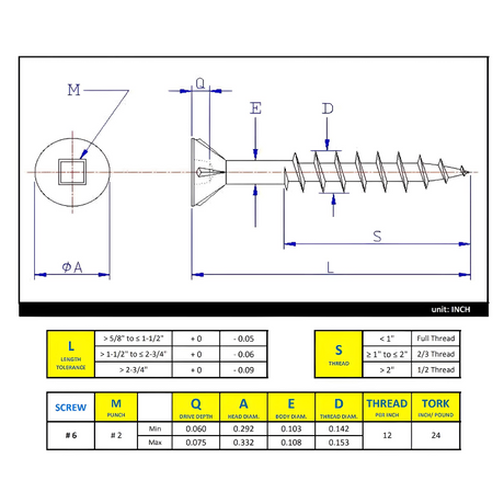 #6 x 1-1/2" Wood Screws Flat Head W/ Nibs Square Drive Coarse Thread Type 17 Point Zinc