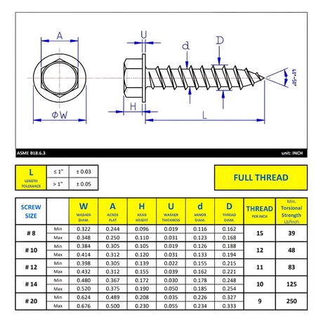 #8 x 1/2" Metal Screw Hex Washer Head Hex Drive Type A Point - Zinc