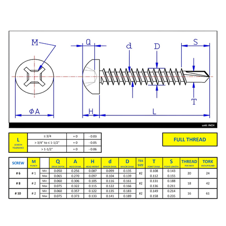 #8 x 1/2" Metal Screw Pan Head Quadrex Drive Self-Drilling Point - Steel Silver RUSPERT