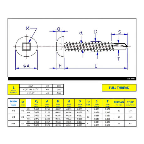 #8 x 1/2" Metal Screw Pan Head Square Drive Self-Drilling Point - Zinc