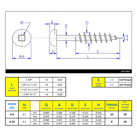 #8 x 5/8" Wood Screws Flat Head Quadrex Drive Coarse Thread Regular Point Zinc