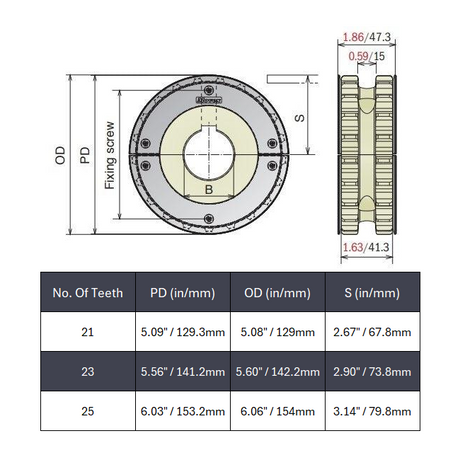 Split Conveyor Sprocket With Guides (Machined) Series 820 - 1-7/16" Bore