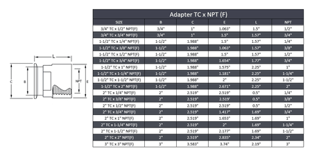 1-1/2" x 1" Tri-Clamp x Female NPT Adapter - Stainless Steel 316