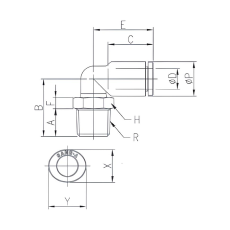 Push to Connect 90 Elbow Fitting 3/8" Tube x 1/4" BSPT (R) Male