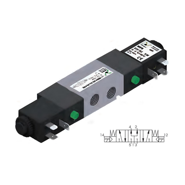 Pneumatic Solenoid Valve 1/4", 5/3 Pressure Center Double Coil 24Vdc