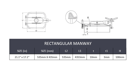 21" x 17" (535mm x 435mm) Rectangular Manway (WZE-B) - SS304/Silicone