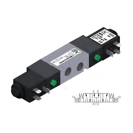 Pneumatic Solenoid Valve 1/4", 5/3 Pressure Center Double Coil 24Vdc