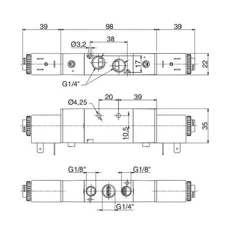 Pneumatic Solenoid Valve 1/4", 5/3 Exhaust Center Double Coil 110Vac