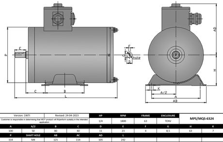 Max Motion MQS-6324 | IEC Motor 1/4HP, 1800RPM, 208-230/460V, Frame 63, TENV, Rigid Base