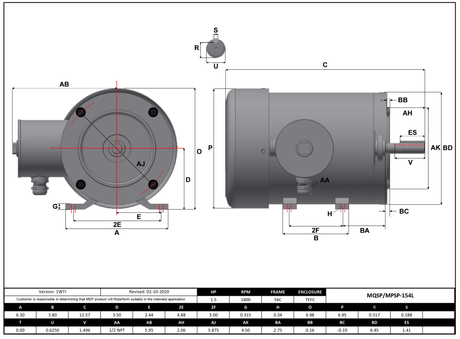 Max Motion MQSP-154L | NEMA Motor 1.5HP, 1800RPM, 208-230/460V, Frame 56C, TEFC, Rigid Base