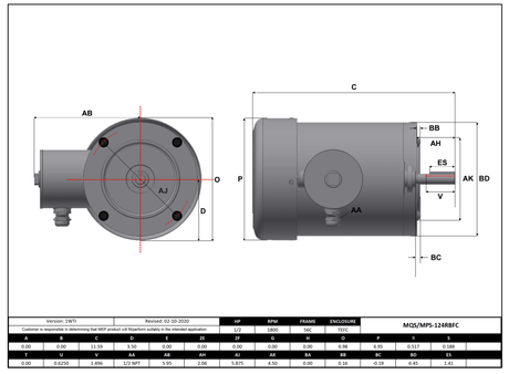 Max Motion MPS-124RBFC | NEMA Motor 1/2HP, 1800RPM, 575V, Frame 56C, TEFC, Round Body Base