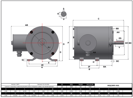 Max Motion MPS-342L | NEMA Motor 3/4HP, 3600RPM, 575V, Frame 56C, TENV, Rigid Base