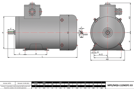 Max Motion MQS-112M2FC-S3 | IEC Motor 5.5HP, 3600RPM, 208-230/460V, Frame 112M, TEFC, Rigid Base
