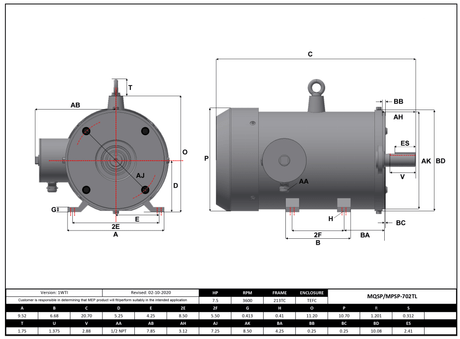 Max Motion MPSP-702TL | NEMA Motor 7.5HP, 3600RPM, 575V, Frame 213TC, TEFC, Rigid Base