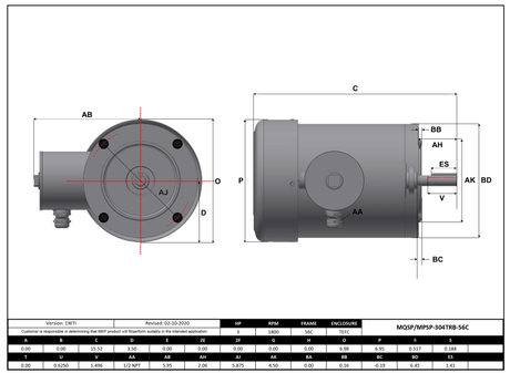 Max Motion MPSP-304TRB-56C | NEMA Motor 3HP, 1800RPM, 575V, Frame 56C, TEFC, Rigid Base