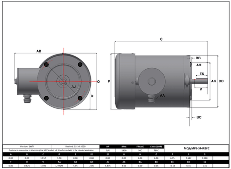 Max Motion MQS-344RBFC | NEMA Motor 3/4HP, 1800RPM, 208-230/460V, Frame 56C, TEFC, Round Body Base