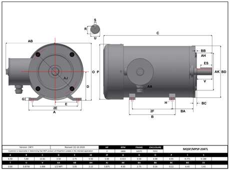 Max Motion MQSP-204TL | NEMA Motor 2HP, 1800RPM, 208-230/460V, Frame 145TC, TEFC, Rigid Base