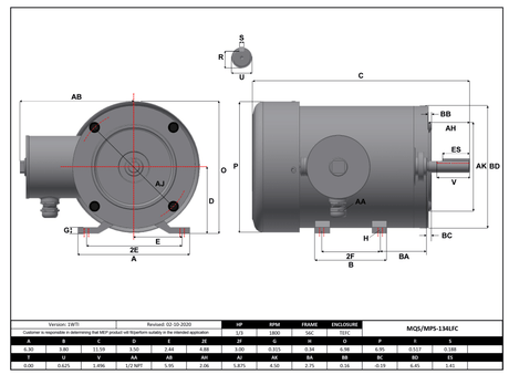Max Motion MPS-134LFC | NEMA Motor 1/3HP, 1800RPM, 575V, Frame 56C, TEFC, Rigid Base