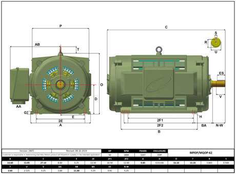 Max Motion MQOP-62 | T-Frame Motor 50HP, 1800RPM, 208-230/460V, Frame 326T, ODP, Cast Iron
