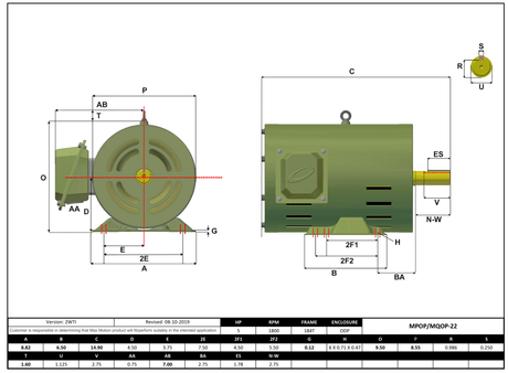 Max Motion MQOP-26 | T-Frame Motor 7.5HP, 3600RPM, 208-230/460V, Frame 184T, ODP, Rolled Steel